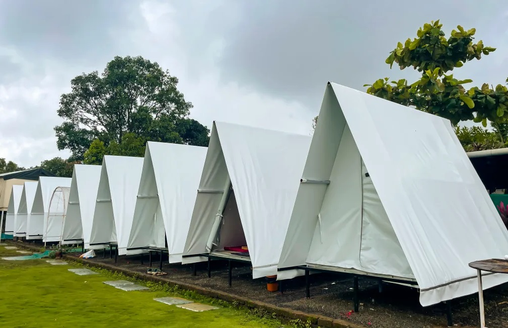 Windy Canvas Tents combine adventure and tranquility by Pawna Lake. Relax with views, delicious meals, evening bonfire, and a comfortable stay while enjoying water sports, fishing, boating, and trekking.